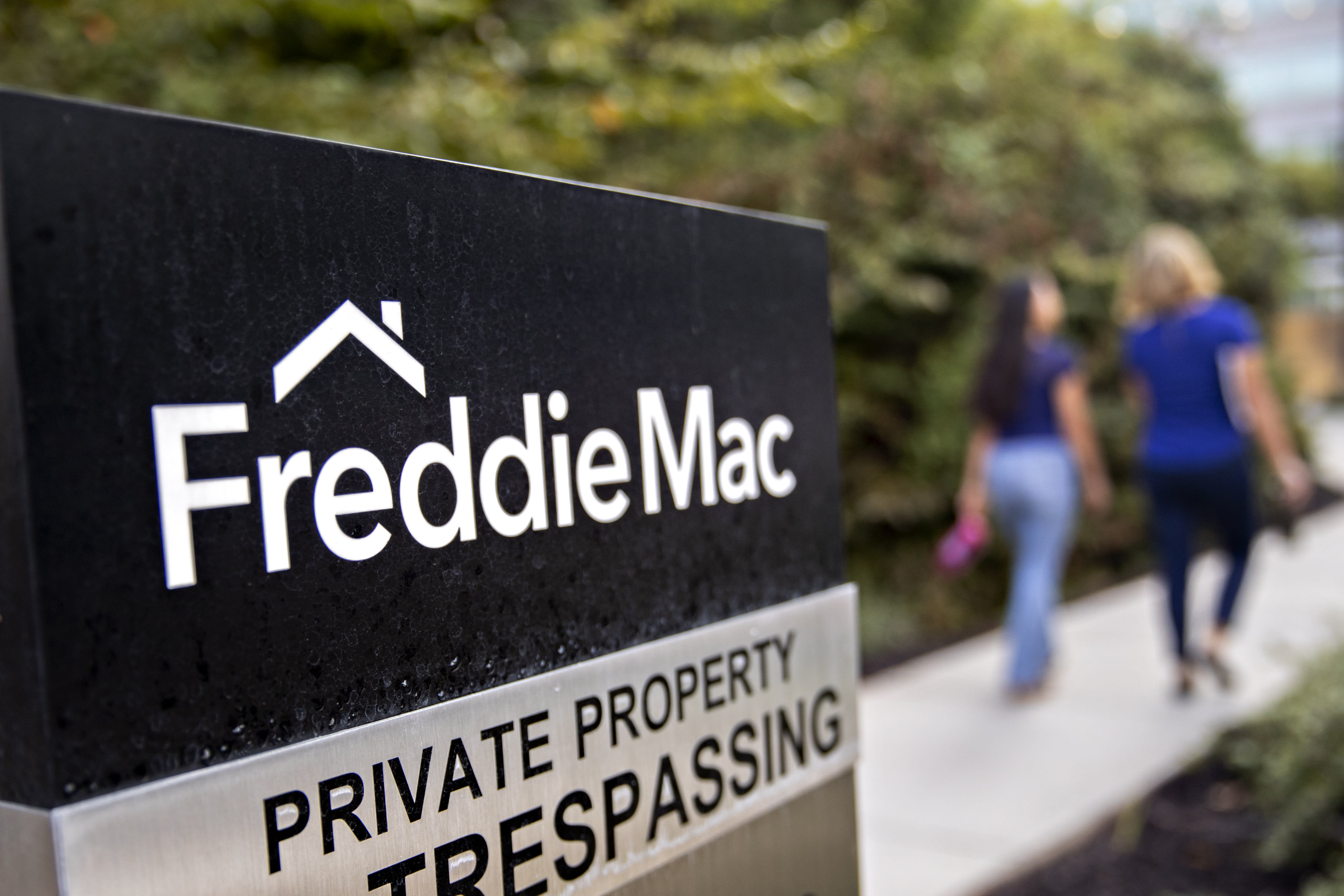 Signage can be found outside of Freddie Mac’s headquarters in McLean, Virginia, USA.